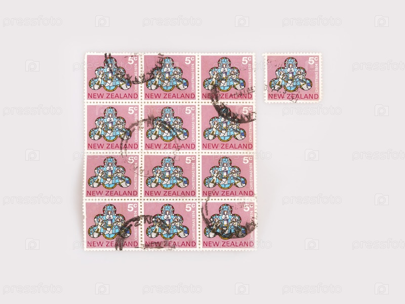 Винтажные рождественские марки Новой Зеландии изолированы на белом фоне