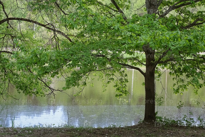 Летний пейзаж с деревом у озера