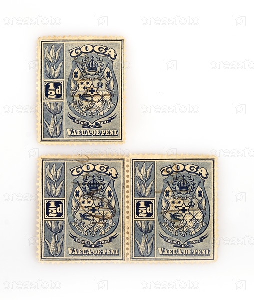 Почтовые марки Королевства Тонга 1942 года со штампом на белом фоне