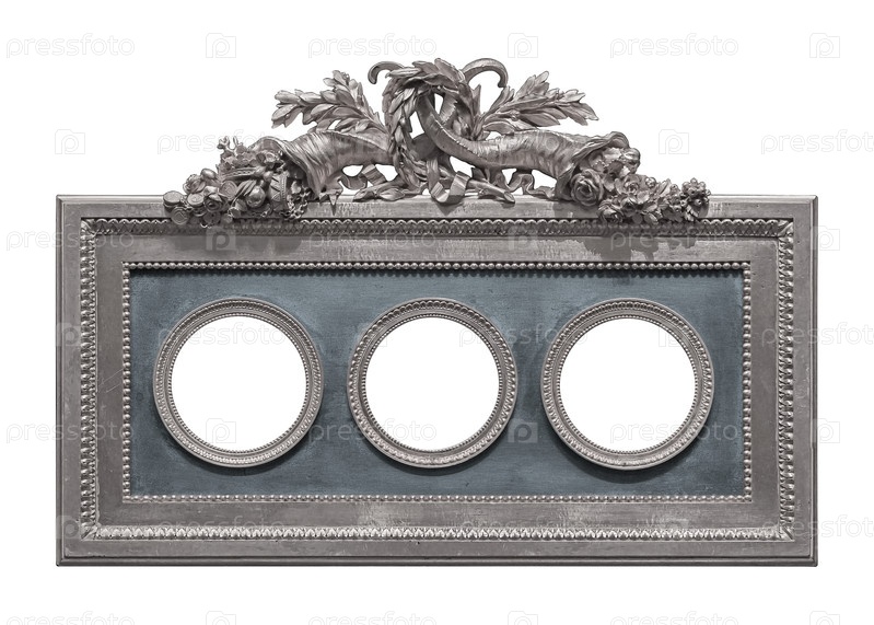 Тройная серебряная рама (триптих) для картин, зеркал или фотографий, выделенных на белом фоне