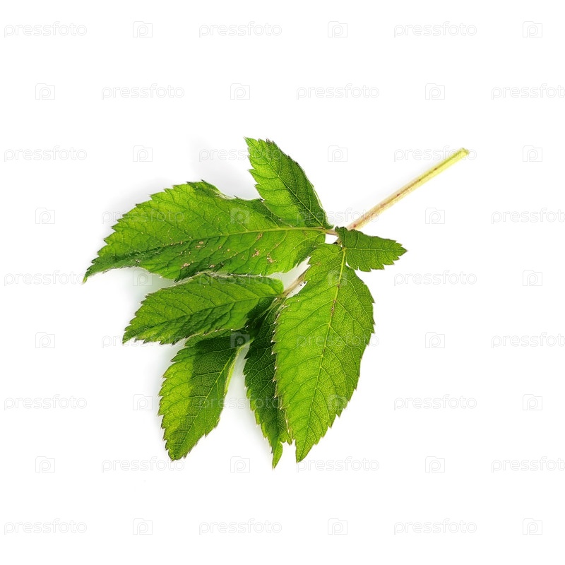 Зеленый лист на изолированном белом фоне
