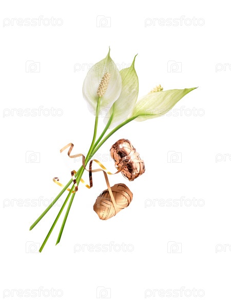 Одинокий цветок Spatchifillum изолирован на белом фоне с чрезвычайно высоким разрешением