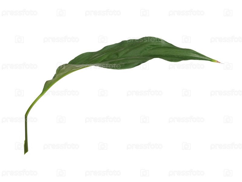 Узкий изогнутый лист спатефилла, изолированный на белом фоне, чрезвычайно высокое разрешение