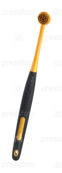 Черно-золотая зубная щётка изолирована на белом фоне, вырез шеи готов. очень высокое разрешение
