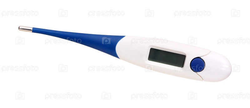 Цифровой клинический термометр выделен на белом фоне. дизайнерский элемент с ребристым путем, отрезка готова