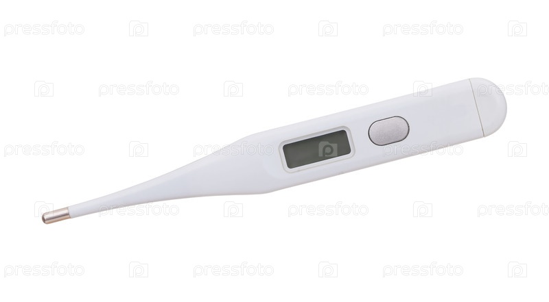 Цифровой клинический термометр выделен на белом фоне. дизайнерский элемент с ребристым путем, отрезка готова