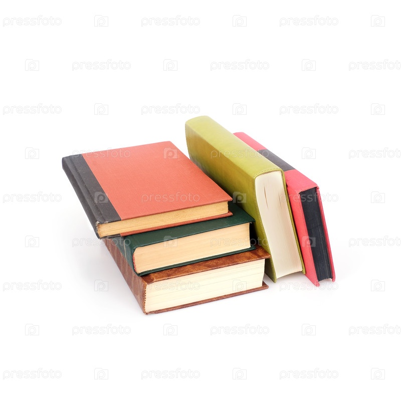 Куча книг в цветных обложках, изолированная на белом фоне