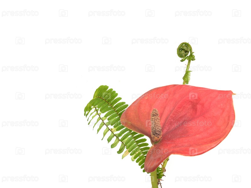 Экстремальный макро-близкий план красного цветка антурии, изолированного на белом фоне, чрезвычайно высокое разрешение