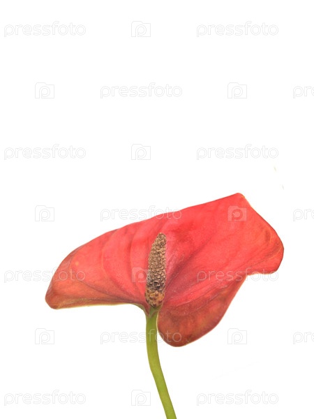 Экстремальный макро-близкий план красного цветка антурии, изолированного на белом фоне, чрезвычайно высокое разрешение
