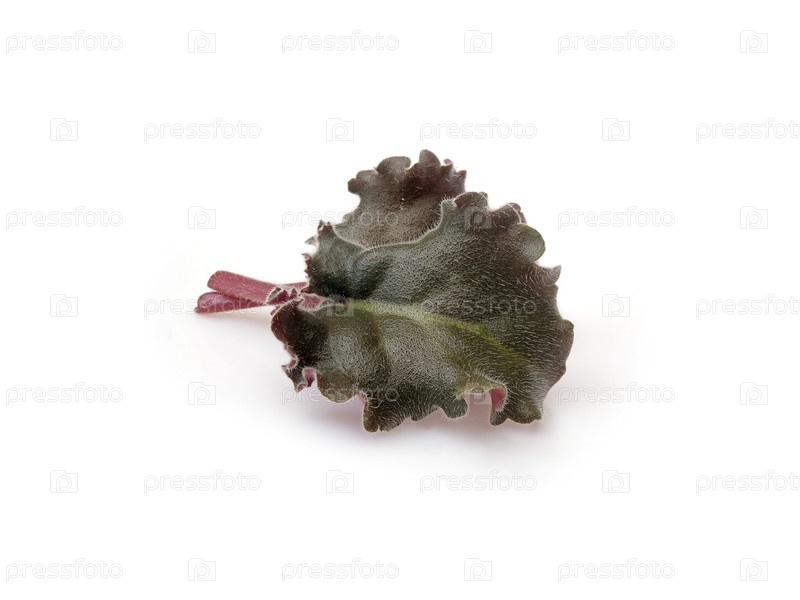 Зеленый лист с фиолетовыми и розовыми оттенками, выделенных на белом фоне, чрезвычайно высокое разрешение