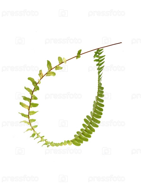 Зеленая ветвь папоротника, связанная в круг, изолирована на белом фоне, элемент цветочного дизайна, резка готова. очень высокое разрешение