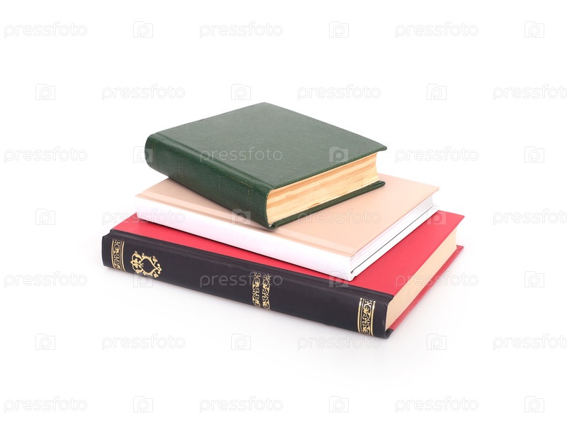 Куча книг в цветных обложках с белыми листами, изолированными на белом фоне