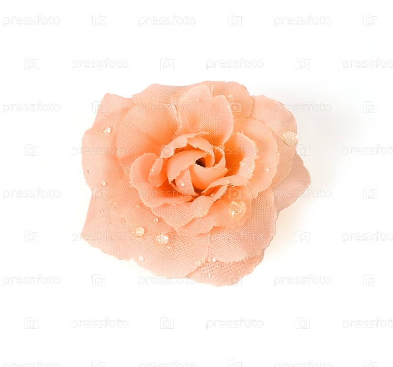 Образец открытки с небольшой искусственной розой с росой, изолированной на белом фоне