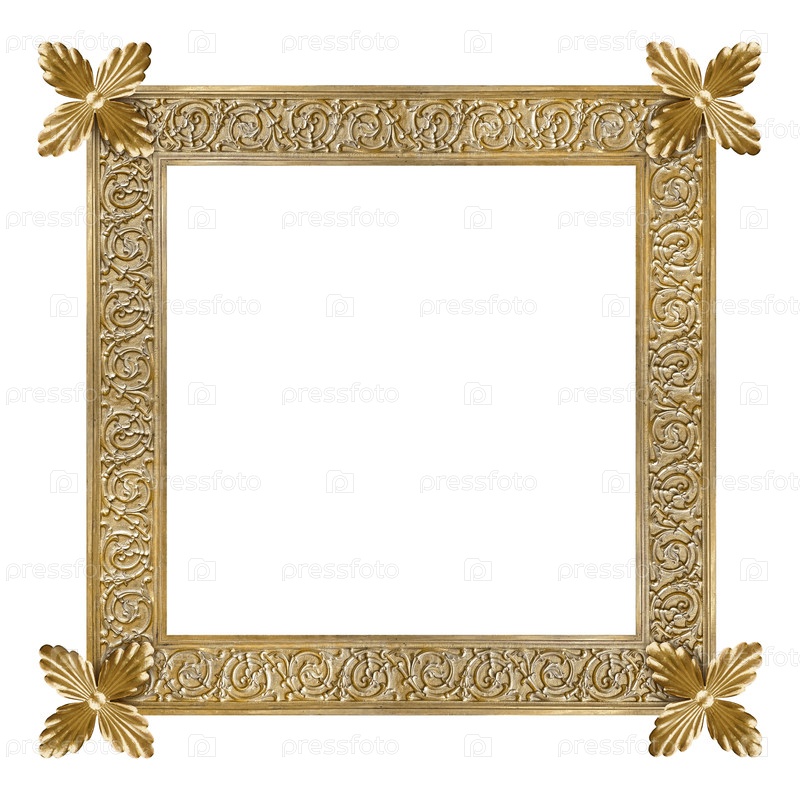 Золотая рама для картин, зеркал или фотографий, изолированных на белом фоне