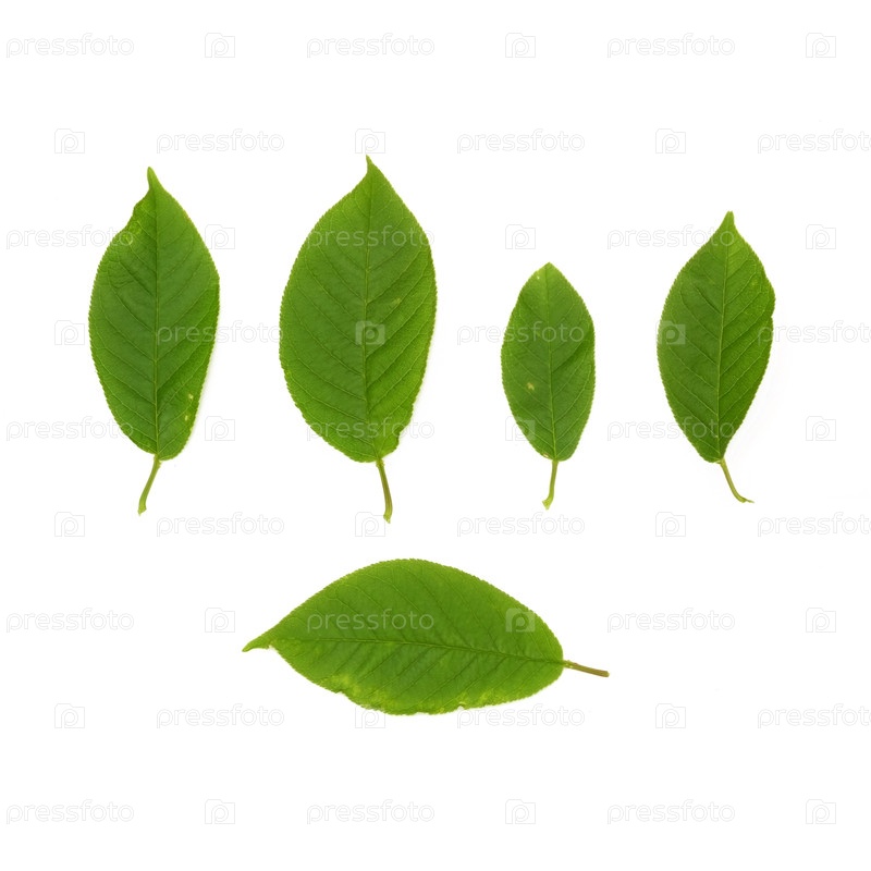 Вишневые листья птиц, изолированные на белом фоне