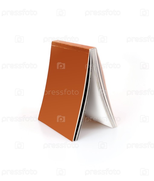 Открытая книга в коричневой обложке с белыми листами, изолированными на белом фоне