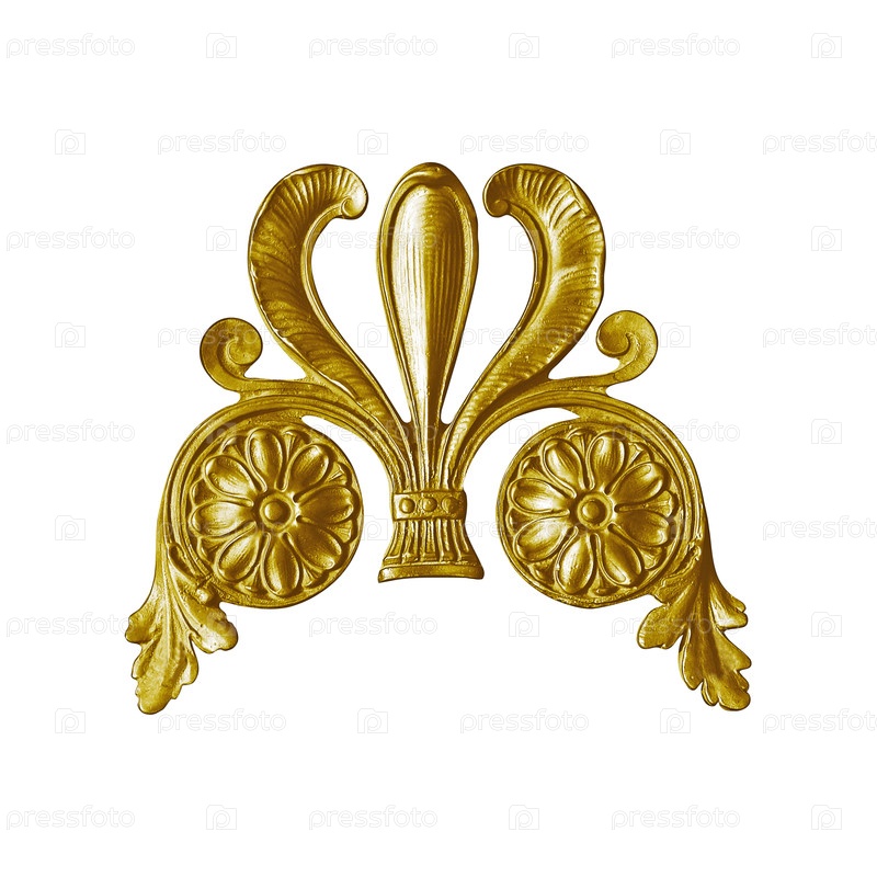 Золотой декоративный элемент с цветочным узором выделен на белом фоне