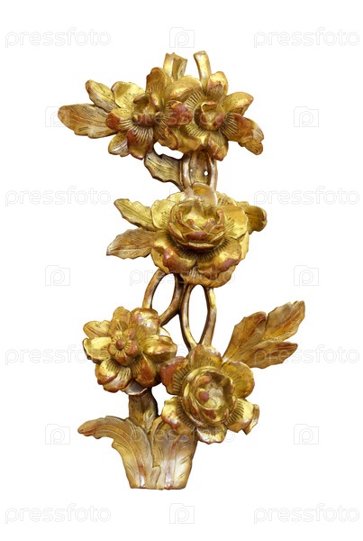 Винтажная декоративная золотая ветвь с изолированными цветами на белом фоне