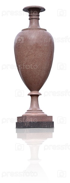 Ваза из садового камня порфира (розовый гранит) изолирована на белом фоне