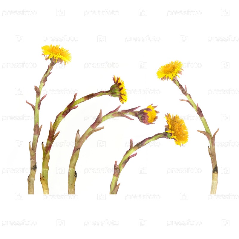 Желтые цветы кольцевой стопы изолированы на белом фоне