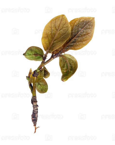 Растение ветвится с почками и небольшими листьями, изолированными на белом фоне
