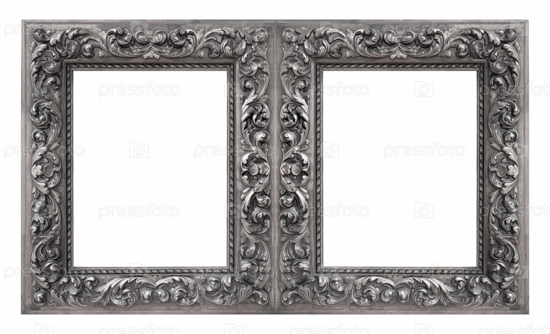 Двойная серебряная рама (диптих) для картин, зеркал или фотографий, изолированных на белом фоне