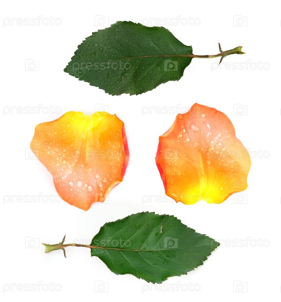 Один лепесток розы с каплями воды, изолированными на белом фоне