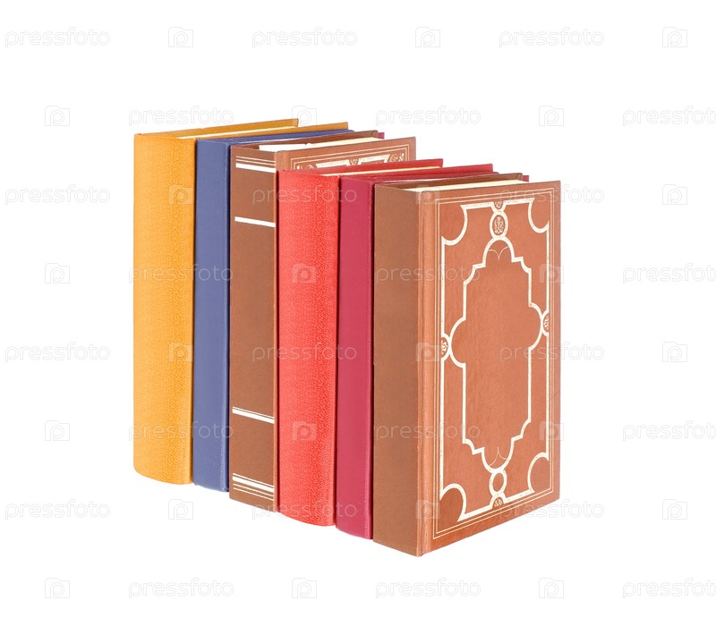 Куча книг в цветных обложках с белыми листами, изолированными на белом фоне