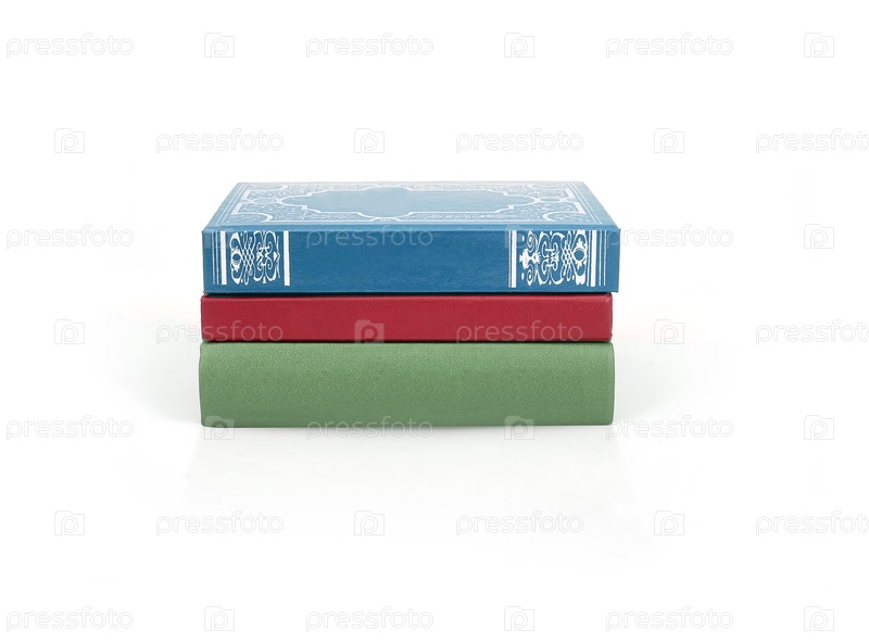 Куча книг в цветных обложках с белыми листами, изолированными на белом фоне