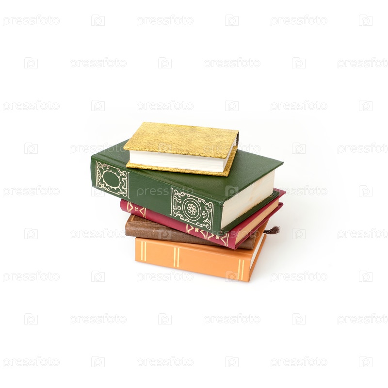 Куча книг в цветных обложках с белыми листами, изолированными на белом фоне