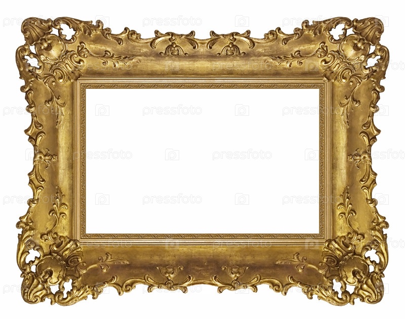 Золотая рама для картин, зеркал или фотографий, изолированных на белом фоне