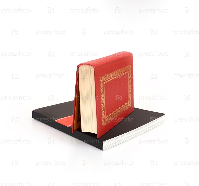 Куча книг в цветных обложках с белыми листами, изолированными на белом фоне