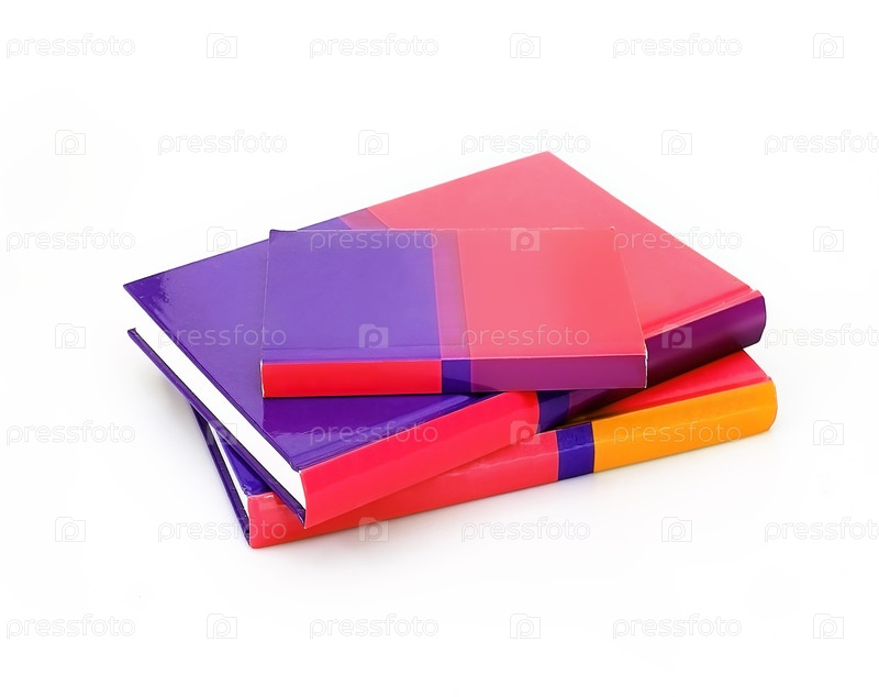 Куча книг в цветных обложках с белыми листами, изолированными на белом фоне