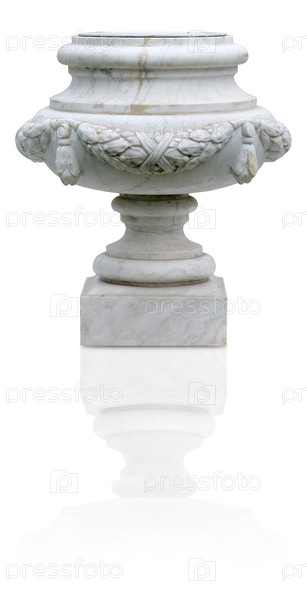 Древняя декоративная мраморная ваза изолирована на белом фоне