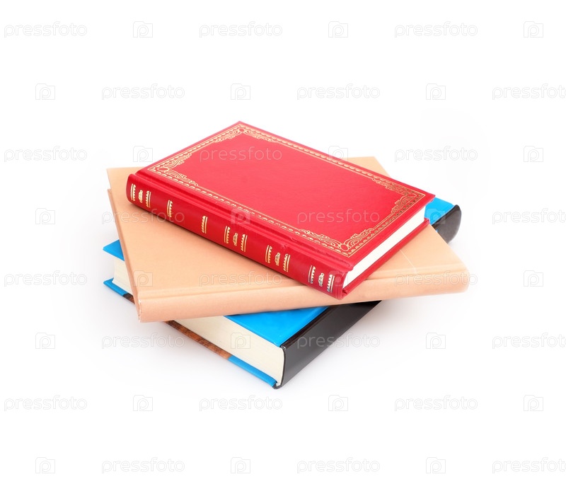 Куча книг в цветных обложках с белыми листами, изолированными на белом фоне