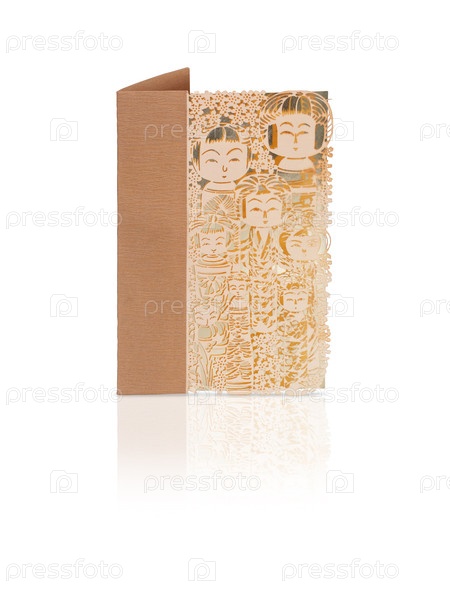 Карточка из крафт-бумаги с золотым узором, выделенным на белом фоне