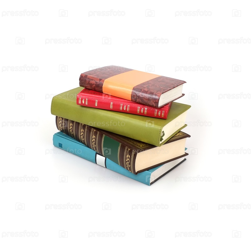 Куча книг в цветных обложках с белыми листами, изолированными на белом фоне