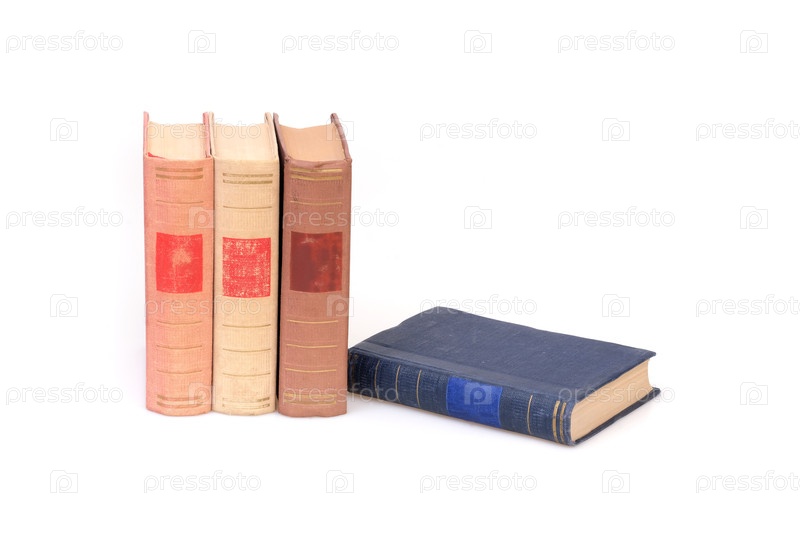 Куча книг в цветных обложках с белыми листами, изолированными на белом фоне