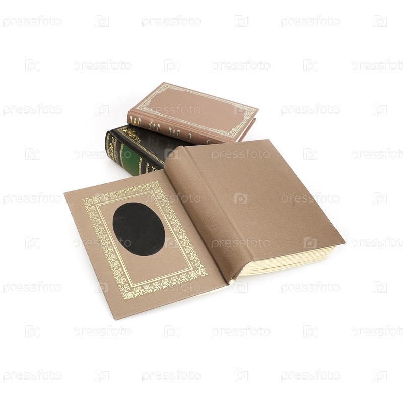 Куча книг в цветных обложках с белыми листами, изолированными на белом фоне