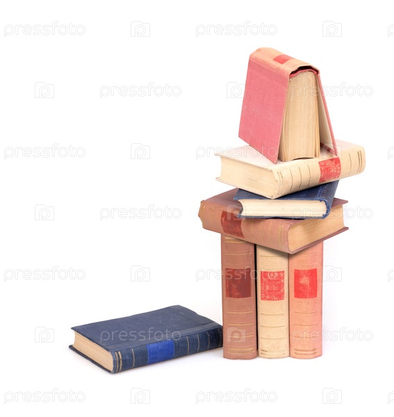Куча книг с белыми листами, изолированными на белом фоне