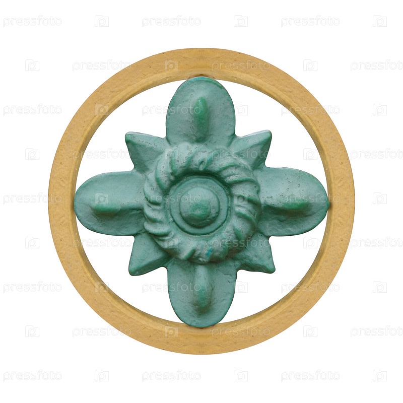 Золотой декоративный элемент в псевдокитайском стиле чинойзери с цветочным узором, выделенным на белом фоне