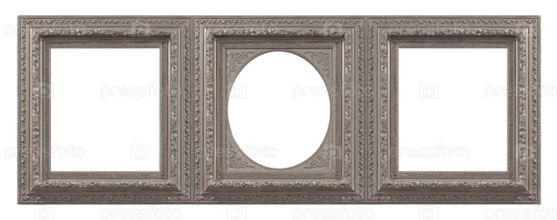 Тройная серебряная рама (триптих) для картин, зеркал или фотографий, изолированных на белом фоне