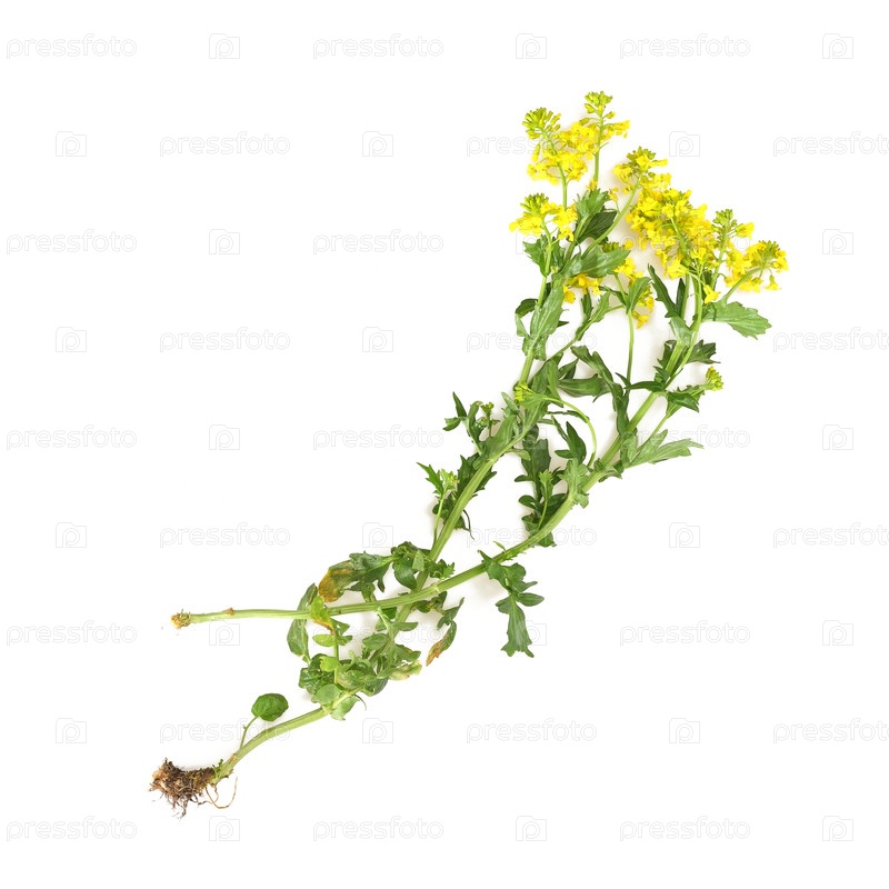 Цветущий желтый горький кресс изолирован на белом фоне
