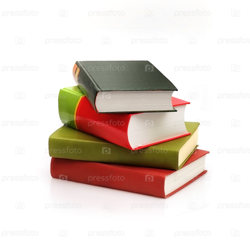 Куча книг в цветных обложках с белыми листами, изолированными на белом фоне