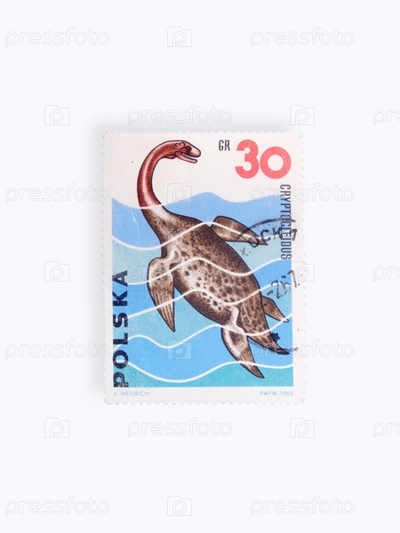 Почтовая марка Польши показывает доисторическое животное (криптоклид), изолированное на белом фоне