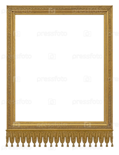 Золотая рама для картин, зеркал или фотографий, изолированных на белом фоне