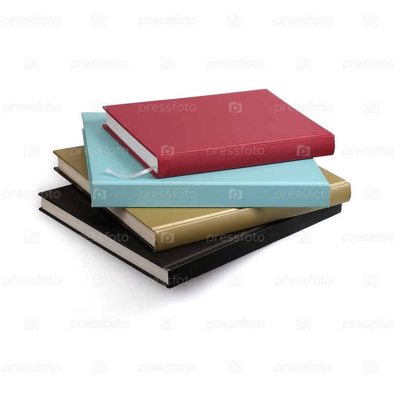 Куча книг в цветных обложках с белыми листами, изолированными на белом фоне