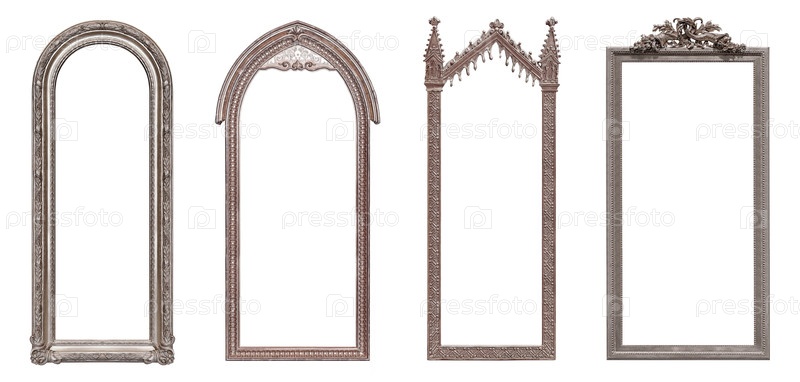Набор серебряных рамок для картин, зеркал или фотографий, изолированных на белом фоне