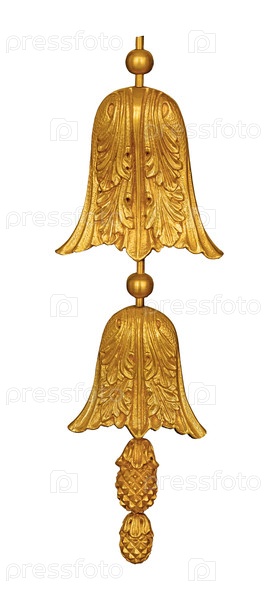 Золотой декоративный элемент с цветочным узором выделен на белом фоне