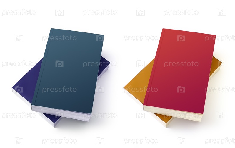 Куча книг в цветных обложках с белыми листами, изолированными на белом фоне